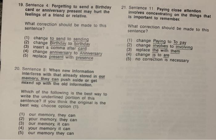 Solved 19 Sentence 4 Forgetting To Send A Birthday Card Or Chegg Com